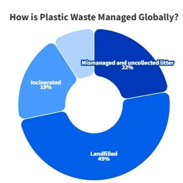49% of plastic waste ends up in landfills, while 22% is mismanaged or littered in nature, and 19% is incinerated.¹¹